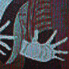 Keisuke Katsuki’s practice centers on Pixel Painting, in which images displayed on monitors are reconstructed according to their display structure by reproducing red, green, and blue pixels with paint. The source images often derive from paintings by Claude Monet and J. M. W. Turner—artists renowned for their depictions of light. By translating these works into images on monitors, a product of modern optical technology, and then rendering them again as paintings, Katsuki encourages a reconsideration of image and light in the contemporary context.